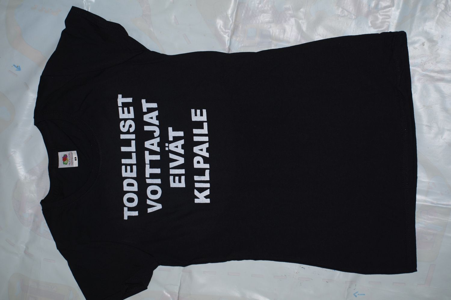 Ajattelen, siis olen ja Todelliset voittajat eivät kilpaile. Käsin painetut uniikit T-paidat 12€/kpl (sis. alv24%). Normaali S-XXL tai Lady Fit XS-XL